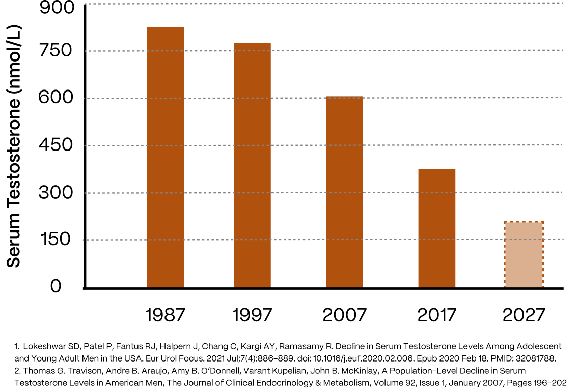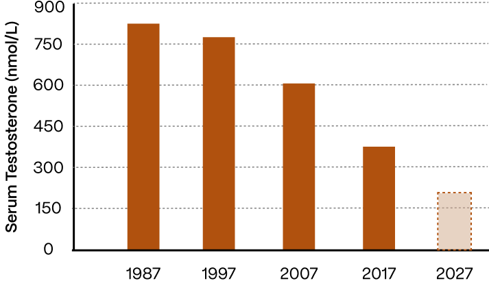 Testosterone is down 50% on average in males 30-65 compared to what it was 20 years ago:
