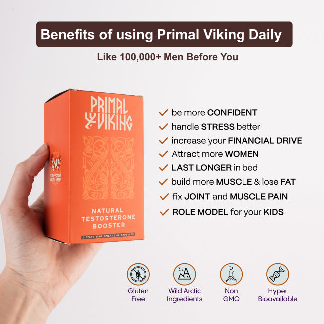 Secret ancient information passed down from the Vikings on how to thrive in the arctics fuel Primal Viking and make it so transformative for males 35-60+ years old. Vikings celebrated Reindeer Organs and Arctic Herbs to keep a muscular and lean body ready for war until their late 50s. *