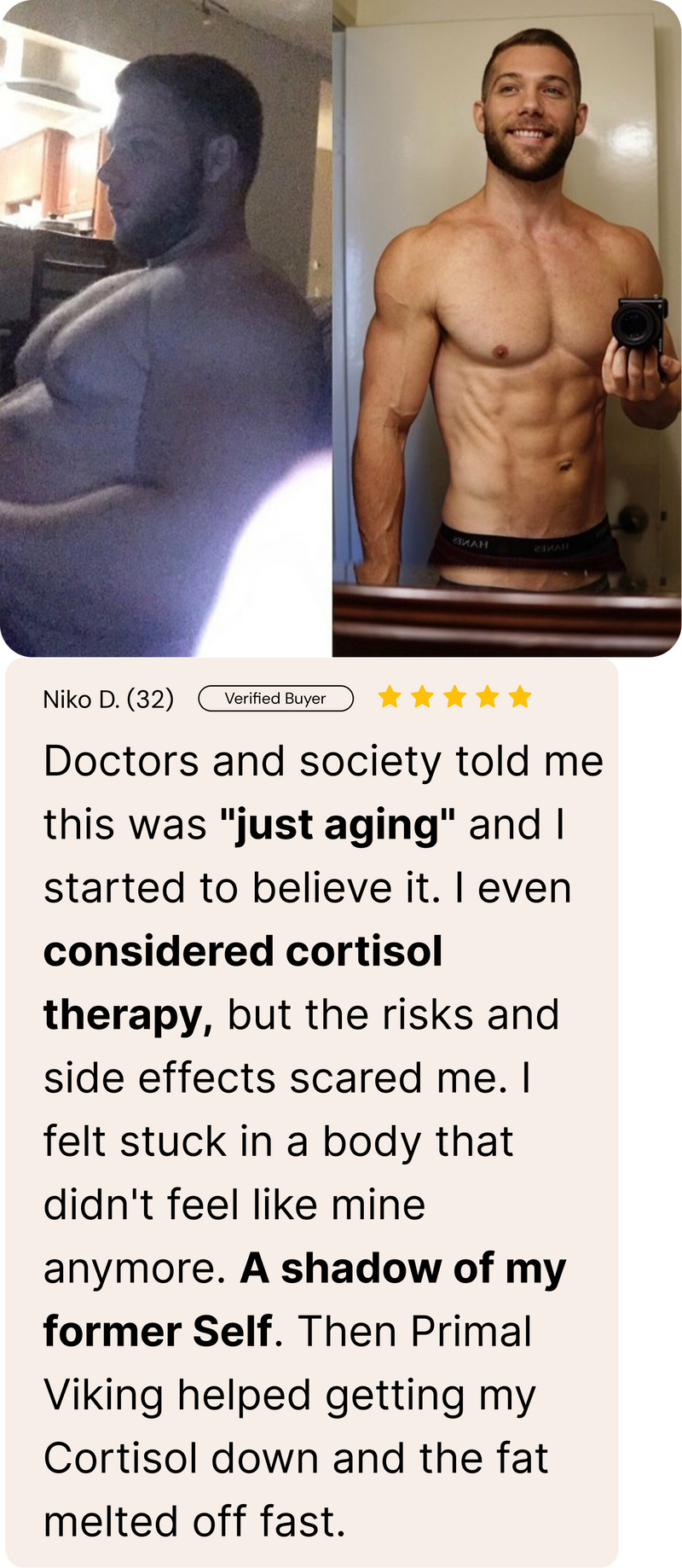 Chronic high cortisol isn’t a disease. It’s a signal failure making the body thinkthat energy is scarce, nutrients are missing, and threat is constant. So it keeps cortisol high and the body on alert. Making it almost impossible to burn off the beer belly and stubborn man boobs. No mater what you do.